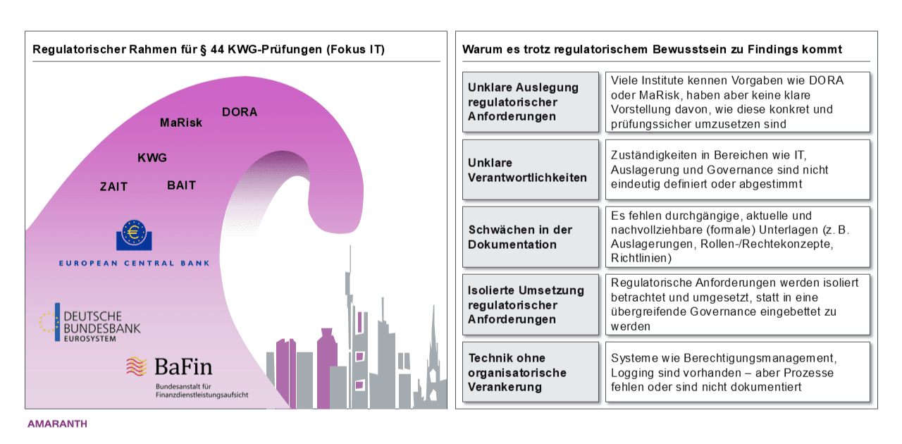 44er-Feststellungen entstehen vor allem durch strukturelle Lücken zwischen Regelwerk und gelebter Praxis. Besonders betroffen sind Informationsrisiko, Informationssicherheit, Auslagerungen und IDV
