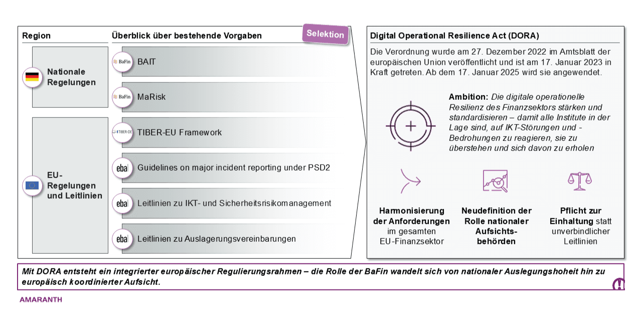 Auch wenn mit der Einführung der DORA nationale Vorgaben wie die BAIT formal aufgehoben wurden, bleiben ihre Inhalte weiterhin relevant. Die MaRisk gelten unverändert und enthalten zentrale Anforderungen zur Bewertung und zum Schutz von Informationen. Daher bedeutet der Wegfall der BAIT nicht das Ende dieser Grundlagen. Solange die MaRisk in ihrer jetzigen Form bestehen, dienen die bisherigen Regelungen weiterhin als Auslegungshilfe, nun ergänzt um die neuen Vorgaben aus der DORA. Dieses Whitepaper betrachtet daher sowohl die bisherigen als auch die neuen Anforderungen.