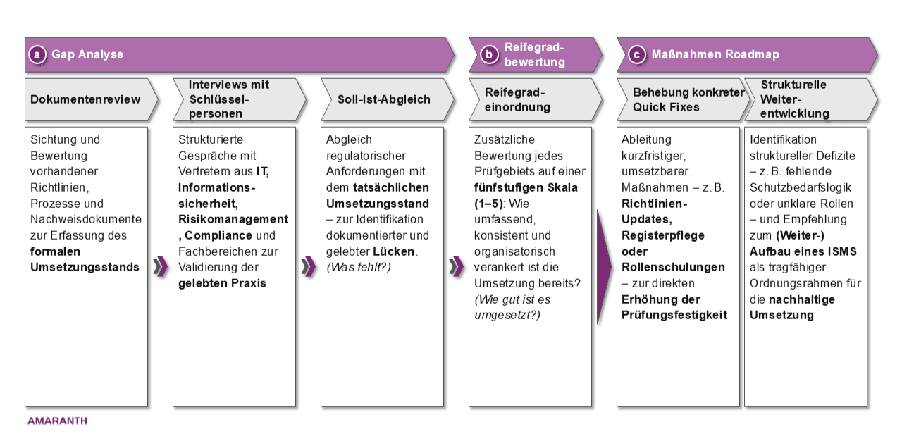 Ein klarer Reifegradansatz wie der DORA Compliance Scan macht Schwachstellen früh sichtbar und schafft planbare Auditfähigkeit. So werden Prüfungsrisiken deutlich reduziert